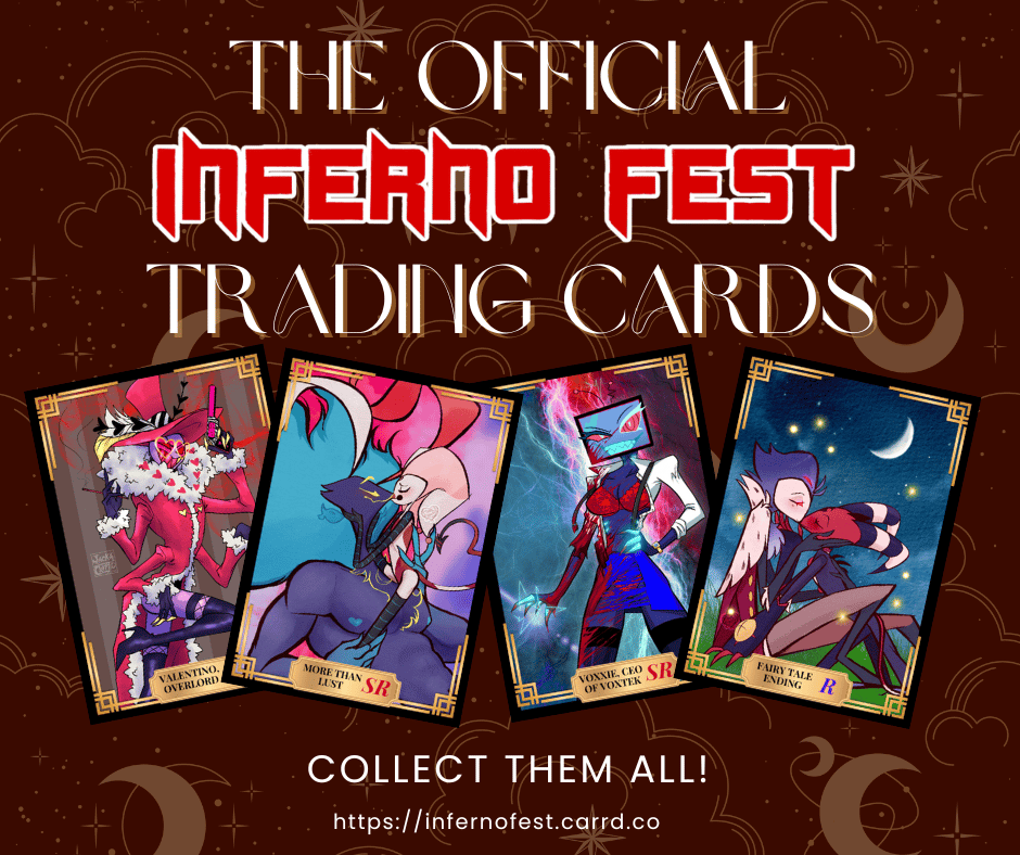 Want more trading cards of your favorite characters from Hazbin Hotel and Helluva Boss? The Official INFERNO FEST Trading Cards are here!