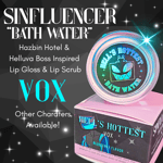 Inspired by Influencers, this "Sinfluencer Bathwater" is a lip balm/lip scrub combo featuring some of your favorite Hazbin Hotel and Helluva Boss characters! Vegan & Cruelty Free, this cute cosmetic comes with holographic labeling and fun packaging.